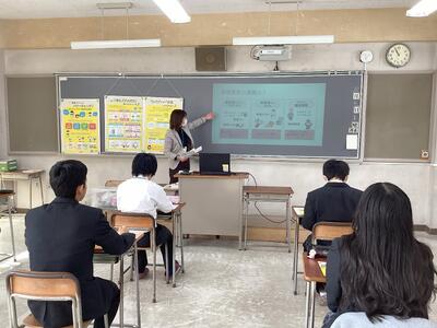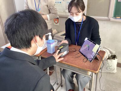 12月4日(木)3~4校時、令和7年度地域の食育推進事業 高校生に向けた食育「計って!気づいて!ベジプラス!」を実施しました。野菜摂取状況測定器(ベジメータ®)を用いて自己の野菜摂取状況を把握した後、一日の野菜摂取目標量(350g)の実測や食育クイズを通して日常生活の中で野菜を意識的に増やす健康行動について考えました。