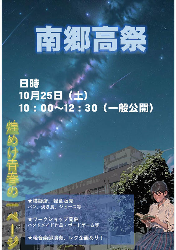 ホーム南郷高校ブログ 学校案内 教育 進路学校紹介 事務室より入試情報 図書館より保護者の皆様へ学校評価同窓会アクセス通学方法